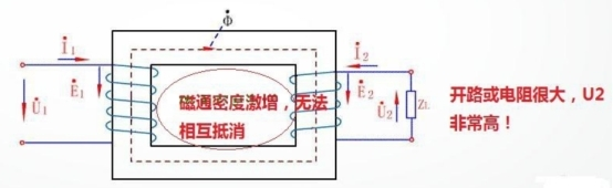 正常運轉(zhuǎn)情況下電流互感器的磁通量是相抵消的,磁通密度很小電流互感器二次側(cè)開路情況下