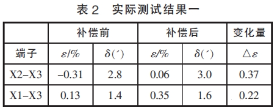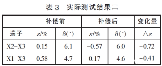 在表2和表3的實(shí)測效果中,補(bǔ)償前后相位差改動不大,標(biāo)明本文中筆者舉薦的輔佐電壓互感器規(guī)劃結(jié)構(gòu)漏抗小,對相位差的影響可以忽略不計(jì),與剖析效果一起。