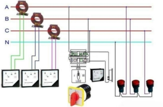 電流互感器是一種特別的變壓器,它的作用是把大電流變成標準小電流,配合檢測外表、計量外表和繼電器等設(shè)備作業(yè)。這樣可以起到擴展外表檢測規(guī)劃,行進電路的穩(wěn)定性和安全性的作用。電流互感器的電流接線原理圖如下圖所示,電流互感器的一次線圈串聯(lián)在一次主電路中,其二次接入的外表和繼電器的線圈也全部是串聯(lián)的。